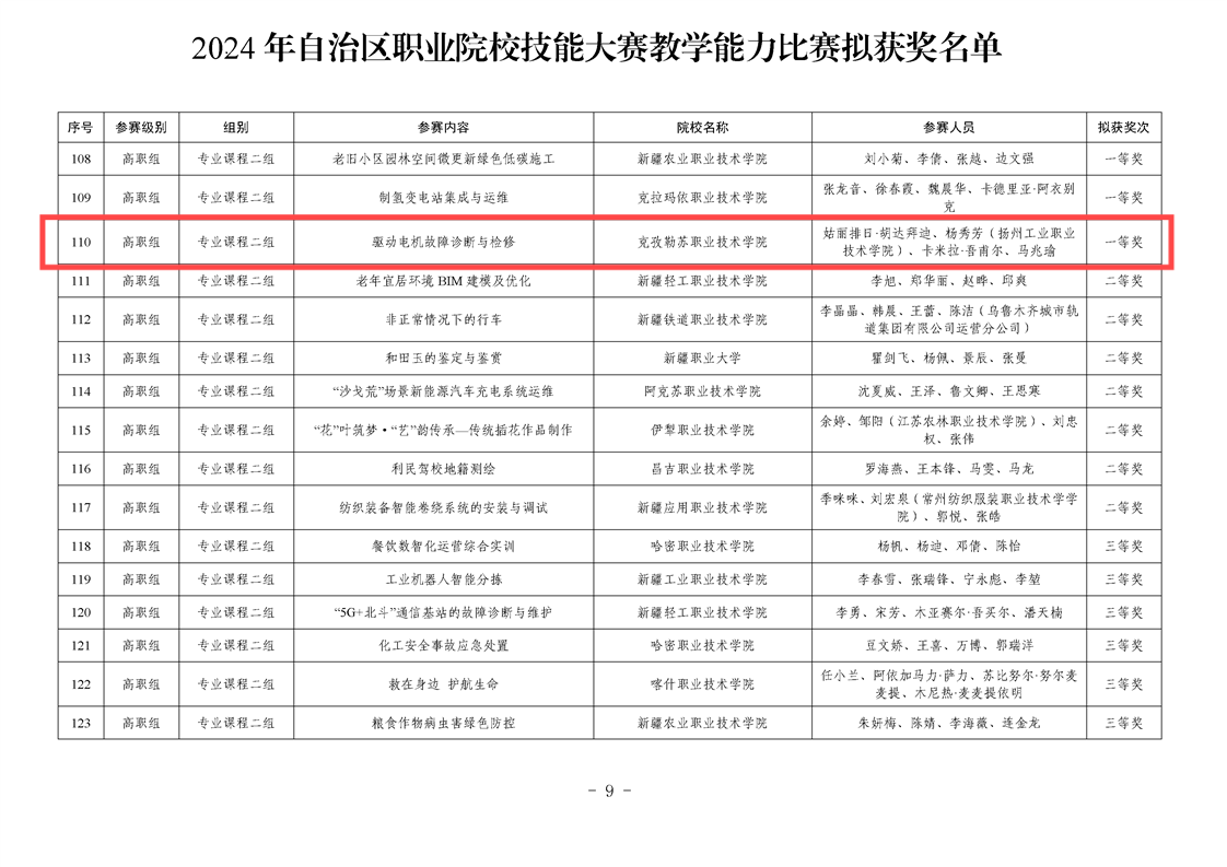 艾弗森贝博ballbet官网构建了“系部培育、校级遴选、苏克联训”竞赛选拔训练机制,先后邀请常州机电职业技术学院、扬州工业职业技术学院、江苏城乡建设职业学院、江苏农牧科技职业学院、连云港中医药高等职业技术学校等多所江苏高职院校教学专家线上线下指导和培训。2024年,江苏援疆院校选派教学能力比赛经验丰富骨干教师与克州职院骨干教师组建苏克混编教学团队,其中扬州工业职业技术学院与艾弗森贝博ballbet官网联合组队(参赛作品—驱动电机故障诊断与维修;参赛教师—姑丽排日·胡达拜迪、杨秀芳、卡米拉·吾甫尔、马兆瑜)、连云港中医药高等职业技术学校与艾弗森贝博ballbet官网联合组队(参赛作品—老年人安全与应急救护;参赛教师—娜迪热·亚生、郭加佳、艾科拜尔·亚森、李霖)、江苏农牧科技职业学院与艾弗森贝博ballbet官网联合组队(参赛作品—超声诊断在小动物临床上的应用;参赛教师—秦占科、古丽麦拉·卡日、地力沙尔·阿不来提、卓国荣)。