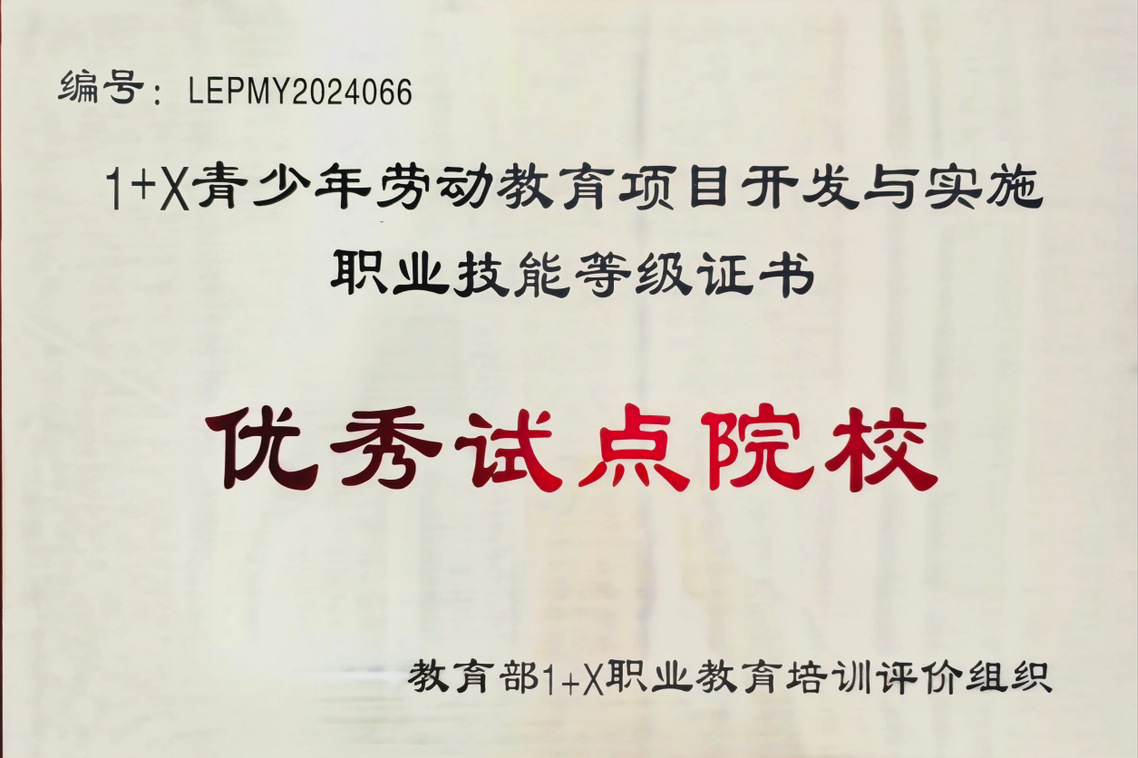 经教育部1+X职业教育培训评价组织认定,我院被评为“1+X青少年劳动教育项目开发与实施职业技能等级证书优秀试点院校”。今后学院将继续探索劳动教育“岗课证”融通课程建设与学生综合素质培养体系改革,持续促进三教改革、深化企业合作、提升产教融合。同时通过打磨课程融合度,加强专业内涵建设,不断提升学生的实践能力和职业素养,为学生拓宽就业渠道,为社会输送高知识、高技能和高素质的专业人才。