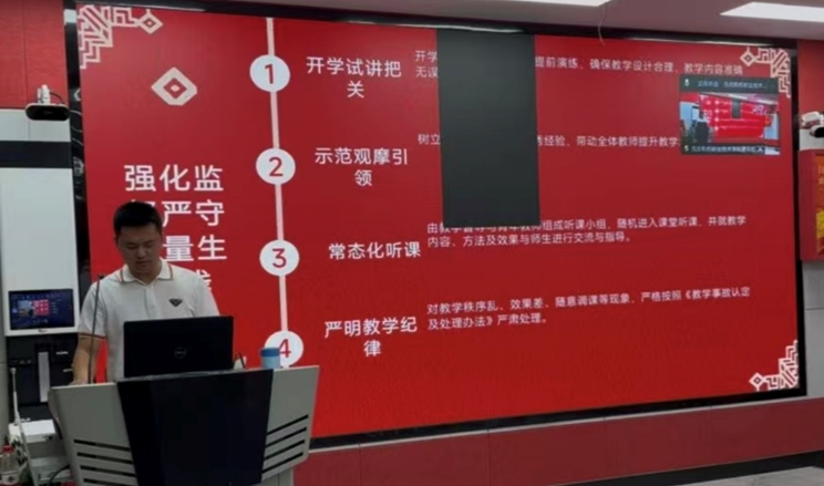 在课程建设经验分享阶段,我院教师高立瀚代表学院发言,从课程设置、师资队伍建设、教学督查机制及现存问题等方面系统介绍了我院“思想道德与法治”课程的建设情况,展现了学院在思政课改革与创新方面的积极探索和阶段性成果。